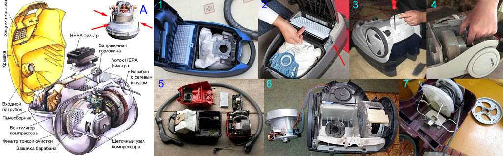 Пошаговая инструкция при разборке корпуса у пылесоса: