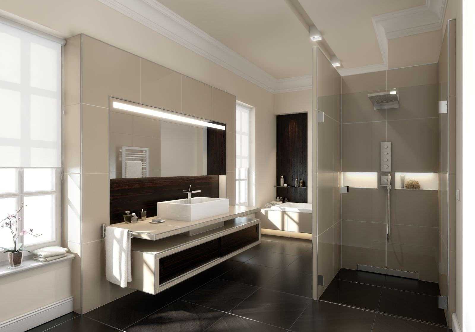 Если хочется создать лаконичный дизайн, то следует использовать плитку. Так можно сделать полностью черное помещение, где белыми будут только предметы сантехники, полотенца и другие детали.