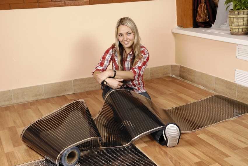 В отличие от кабеля, который после отключения еще некоторое время удерживает тепло, пленка остывает моментально. Поэтому в помещениях, где ее используют как единственный источник обогрева, люди укладывают между линолеумом и карбоном разные материалы, тормозящие остывание пола. К примеру, листовое железо.