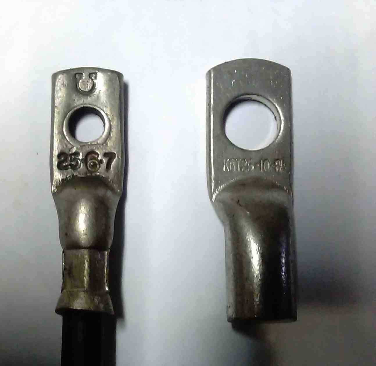 алюминиевые. Для жил из алюминия применяются наконечники из такого же материала. С одного конца находится контактная лопатка с отверстием, а другой трубчатое отверстие. Жилы соединяются с наконечником методом опрессовки специальным инструментом. Предварительно изделие смазывают кварцевазелиновой смазкой, что защищает от окисления;