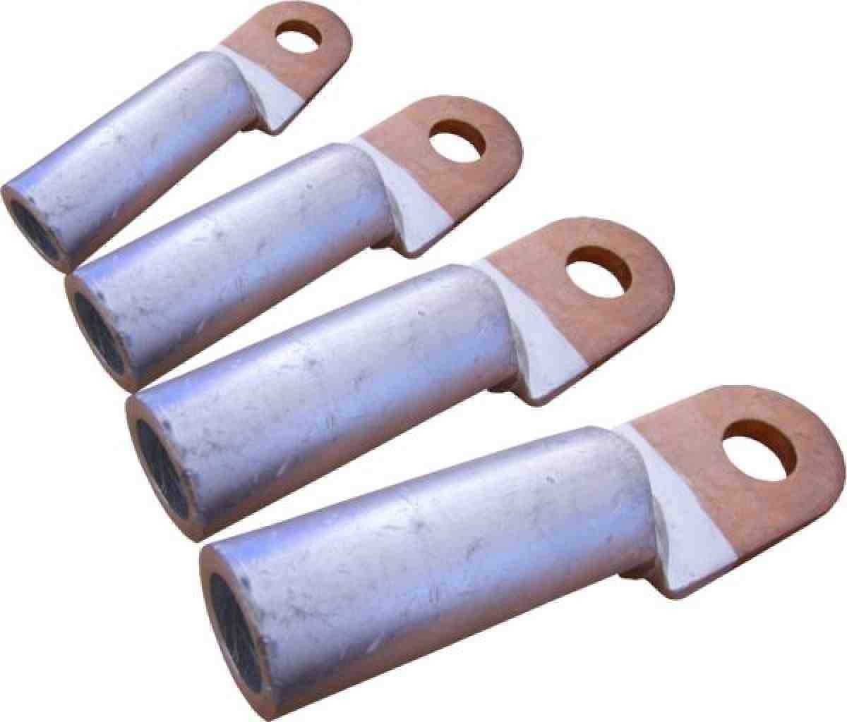 алюмо-медные. В распределительных устройствах могут применяться медные шины, для которых подходят алюмо-медные наконечники. В них посадочная трубка выполнена из алюминия, а контактная лопатка из меди. Изделия выполняются методом фрикционной диффузии или способом газодинамического напыления. При этом напыление из меди покрывает изделие сверху, что позволяет обеспечить стойкий контакт;