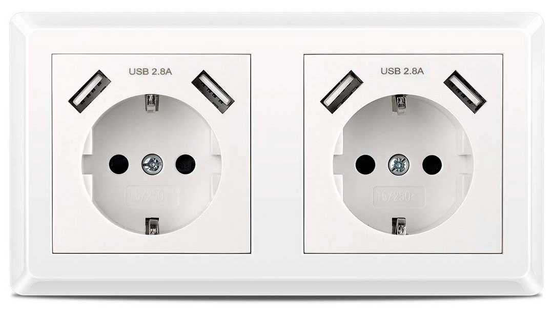 Двойная розетка с USB: встраиваемая розетка двойная для скрытой проводки с USB очень удобная в эксплуатации. Имея такие силовые розетки USB, Вам уже не нужно использовать адаптеры для зарядки телефона и др. устройств. Достаточно обычный кабель USB для подзарядки Вашего девайса подключить к розетке с USB и зарядить устройство.