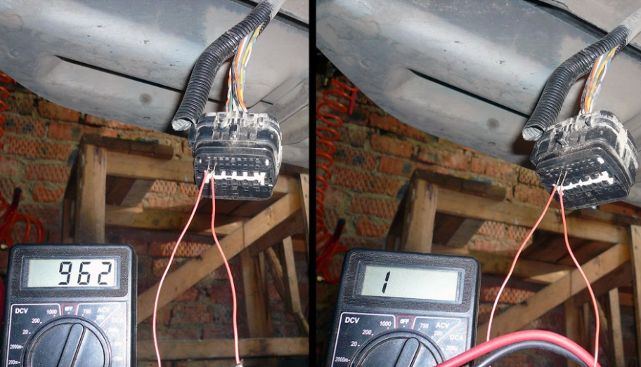 Ещё одной неисправностью электропроводки является плохой контакт в соединениях. Найти эту неисправность можно при помощи вольтметра. Существует два способа проверки. При первом способе один провод вольтметра соединяется с массой, а вторым касаемся выводов соединений с обоих сторон замеряя напряжение. Падение напряжения при этом не должно быть более 0,5В. При втором способе необходимо один провод соединить с выводом на одном конце разъёма, а второй на вывод с другой стороны этого разъёма. Если показания вольтметра при этом будут выше 0,5В, то необходимо зачистить контакты в разъёме.