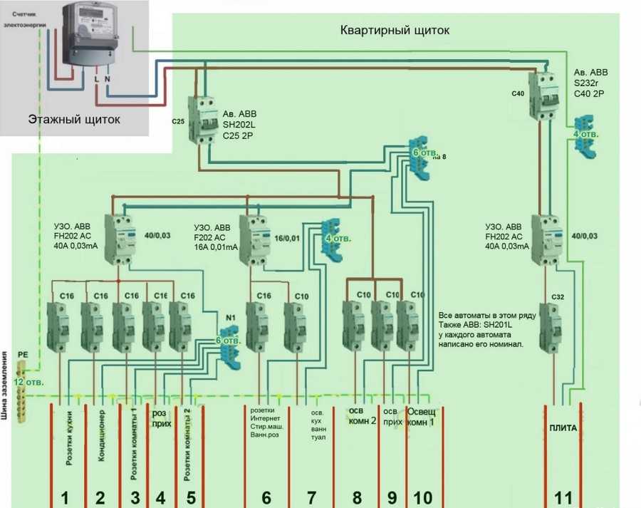 Все схемы и квартирные щитки должны собираться в соответствии с нормативными документами и не противоречить прописанным там указаниям и правилам