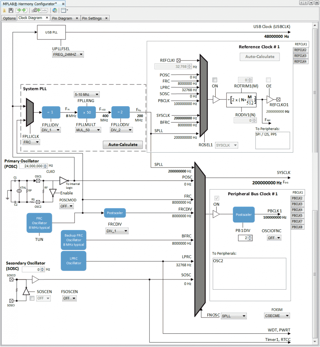 - Простой процесс настройки и работы благодаря графическому интерфейсу и конфигуратору MPLAB Harmony Configurator (MHC), который позволяет проводить конфигурацию и генерацию начального кода, периферийных библиотек и промежуточного программного обеспечения (USB, TCP / IP и т. д.);