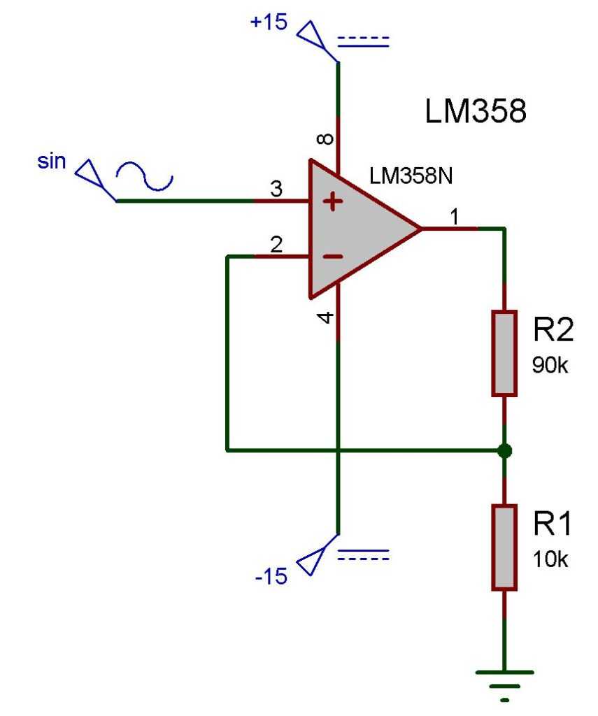 Как вы видите, входной сигнал усилился ровно в 10 раз. Фаза выходного сигнала осталась такой же. Поэтому такой усилитель называют НЕинвертирующим.