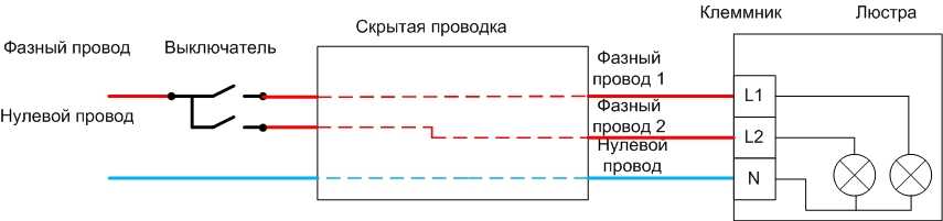Подключение пятирожковой люстры к двойному (двухклавишному) выключателю