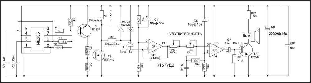 Идея металлоискателя взята из книги «499 схем на таймере NE555