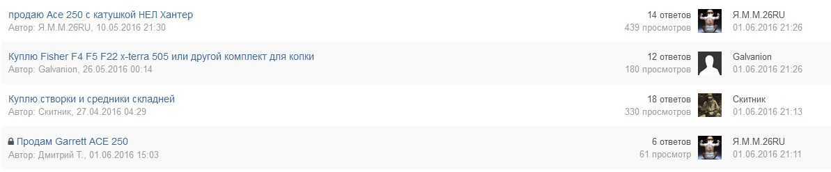 Также не стоит забывать и про доски объявления – Авито и другие специализированные порталы, посвященные поиску. Подобные доски объявлений можно найти на таких сайтах, как mdrussia.ru, mdregion.ru. Где люди, попользовавшись простыми приборами, хотят поменять прибор и приобрести более новый и “навороченный” – для поиска монет, старины и т.д.