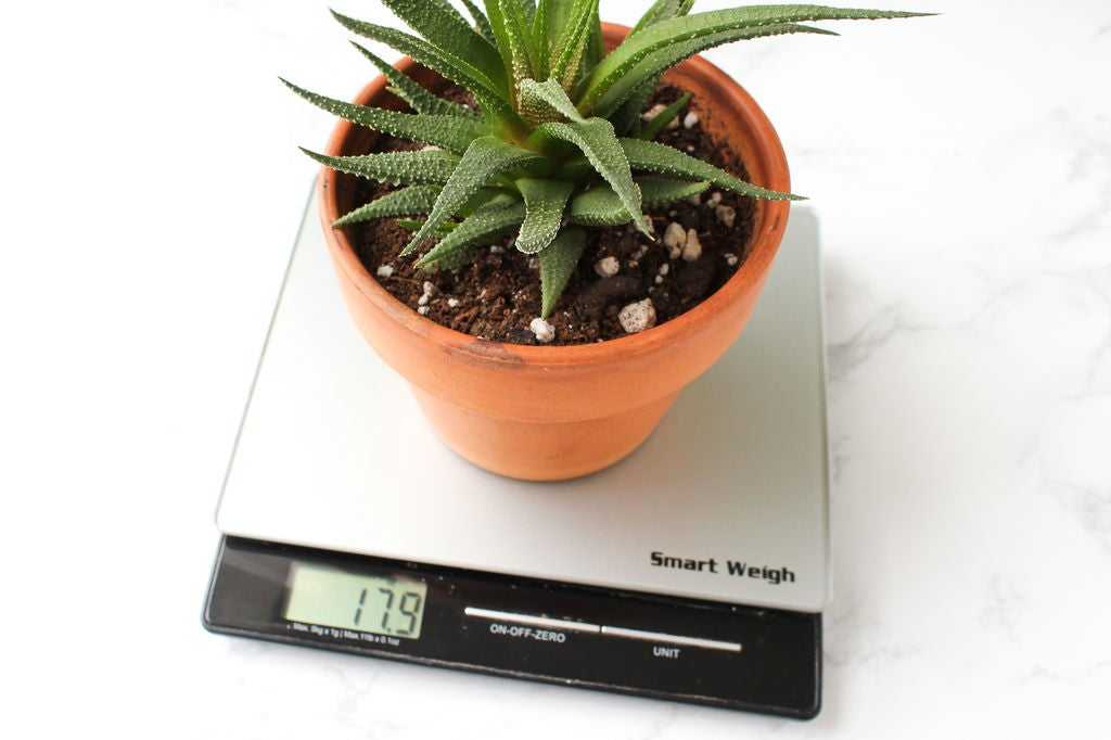 Взвешивание – это один из распространенных методов, по которому определяют необходимость в увлажнении. Первоначально надо взвесить полностью сухое растение и записать или запомнить результат. Разница в весе будет хорошо заметна, когда взвесите только что политый цветок. Можно воспользоваться и иным способом, приподняв горшок рукой. В этом случае, чтобы почувствовать разницу, необходимо потренироваться, приподнимая несколько раз растение между увлажнениями.
