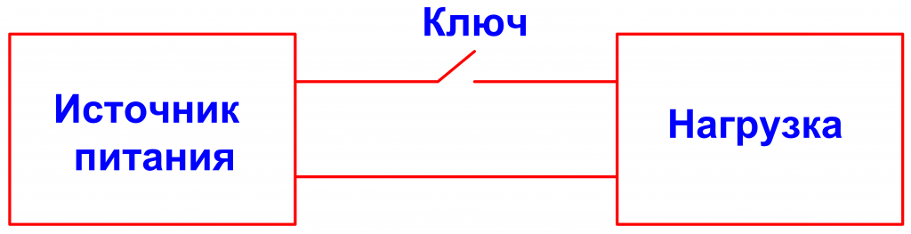 Основными элементами любого типа импульсного регулятора мощности являются полупроводниковые ключи – транзисторы или тиристоры. В простейшем виде схема импульсного источника питания имеет следующий вид. Источника постоянного напряжения Uип ключом K подсоединяется к нагрузке Н. Ключ К переключается с определенной частотой и остается во включенном состоянии определенную длительность времени. С целью упрощения схемы я на ней не изображаю другие обязательные элементы. В данном контексте нас интересует только работа ключа К.