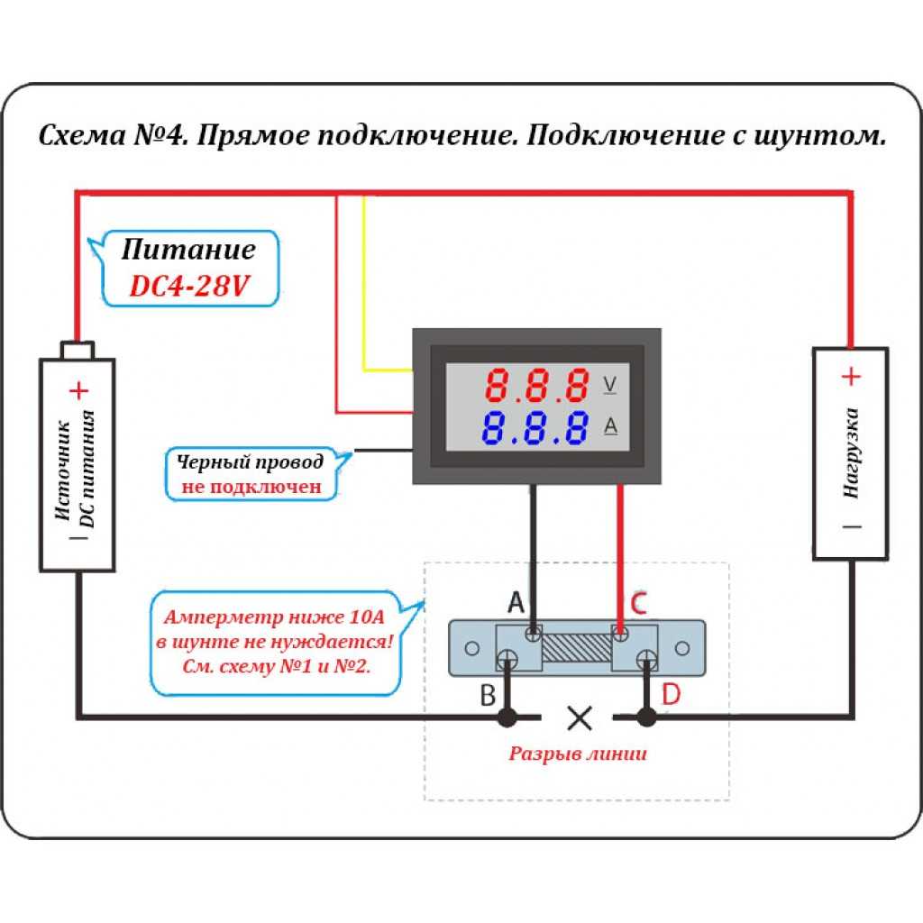 В других случаях табло покажет только падение напряжения. Также желательно, чтобы у прибора присутствовал шунт, для доработки процесса подключения. Чтобы у вас не было дополнительных расходов, перед покупкой амперметра всегда уточняйте у продавца наличие шунта внутри прибора. Если пересчитать делитель, то «показиметр» можно использовать не только как вольтметр — например, можно сделать индикацию тока, температуры и т. Оснащен настроечными резисторами.