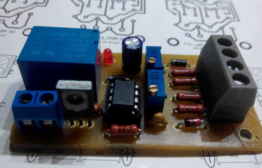 В качестве основы для монтажа элементов используется плата. Резистор крепят сверху или выводят с помощью проводов. Для винтовых клеммников в плате предусмотрены специальные места. После того как все комплектующие будут впаяны согласно схеме, излишки на местах соединений нужно убрать и проверить надежность контактов. Чтобы защитить транзистор, нужно выполнить монтаж диода. Он устанавливается параллельно реле. Затем выставляется период срабатывания. Если реле будет размещено на выходе, оно позволит корректировать нагрузки.