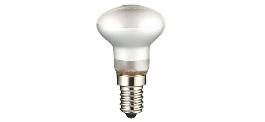 Обозначение используют для источников света зеркального типа, устанавливаемых в подвесных потолках или точечных плафонах. Отличием является вытянутая колба с матовым покрытием, на торце которой предусмотрена расширенная секция. Лампочку оборудуют стандартным винтовым креплением Е14 или Е27. Индекс R50 указывает на конструкцию (литера R) и диаметр верхней части колбы (50 мм).