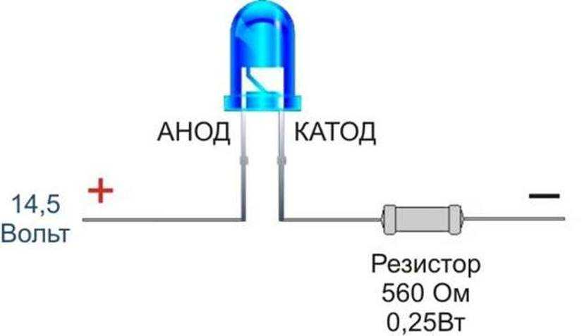 При параллельном соединении каждый диод включают через резистор, гасящий избыточное напряжение. При последовательном – напряжение на цепочке диодов равно сумме на всех диодах. Гасится избыток, равный разности напряжения питания и суммы напряжений на диодах.