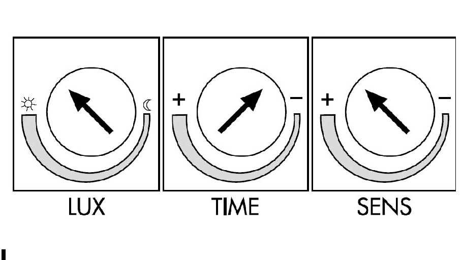 Данный параметр должен быть настроен на то время суток, когда естественного освещения не хватает для нормального обозрения окружающего пространства. Настройка производится поворотом ручки потенциометра, подписанного LUX, она находится рядом с ручкой чувствительности (SENS).