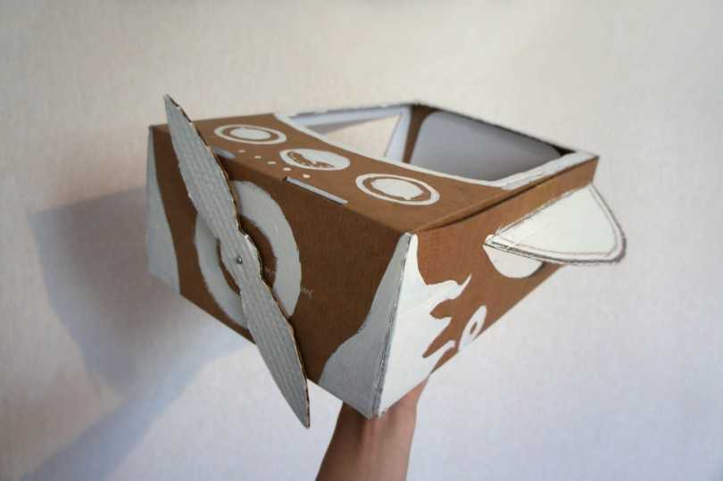Для начала делаем из картона от коробки длинный параллелепипед с одной зауженной стороной. Далее делаем в широкой стороне иллюминаторы и двери.