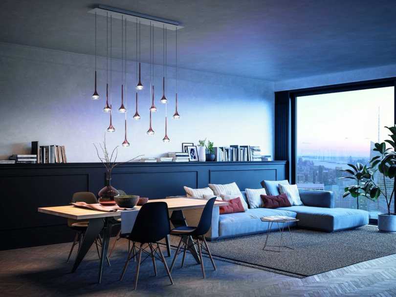Отличное решение для замены стандартной люстры, устанавливаемой по центру помещения. Разновидностей крепления масса – скрытое, подвесные цепи, тонкий кабель, декоративная трубка.
