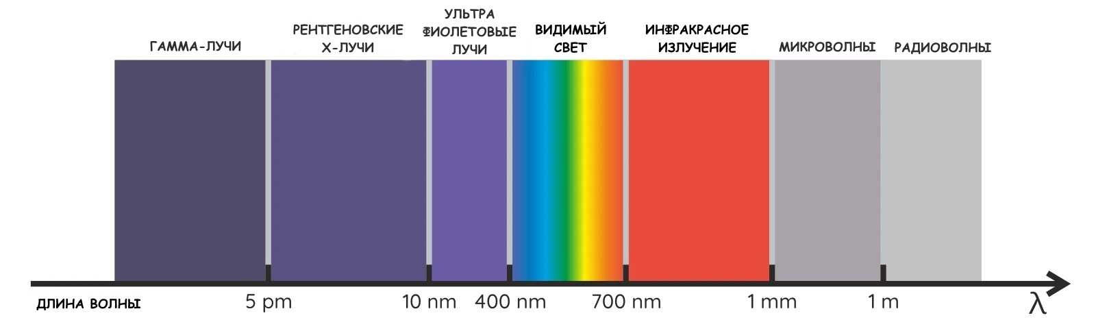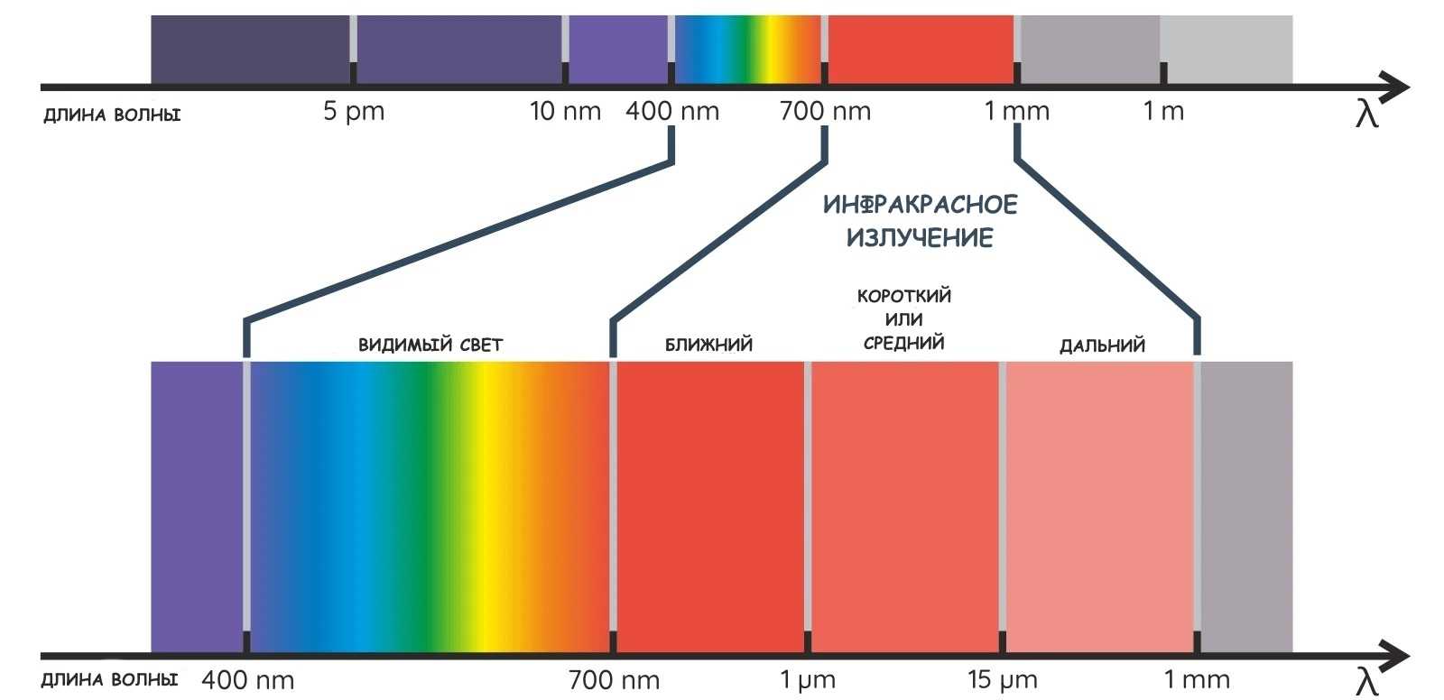 Инфракрасный спектр — это небольшая часть электромагнитного излучения, которую, к сожалению, наш глаз не может увидеть. Длина волны инфракрасного излучения больше длины волны красного света, т.е., имеет более низкую частоту.
