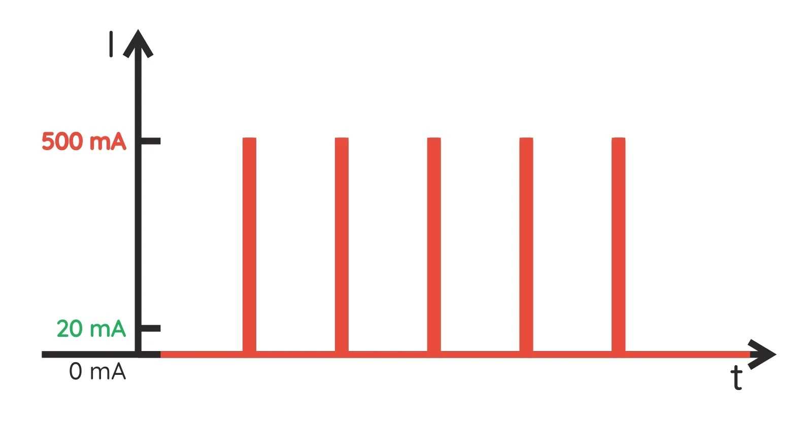 Практическое использование передающих диодов отличается от светодиодов тем, что они обычно имеют импульсное питание. Передача происходит миганием с частотой несколько десятков килогерцовых импульсов с заполнением всего на несколько процентов. Проще говоря, вместо того, чтобы постоянно гореть, мы мигаем диодом очень быстро — таким образом, чтобы время свечения было намного короче, чем при выключенном диоде.