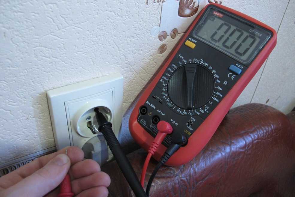 Также можно прозвонить проводку с помощью розетки. Ручку диапазонов переместить в положение измерения напряжения переменного тока. Необходимо выставить показатель 750 В. Щупы устройства подсоединяются в дырки розетки. Напряжение должно показывать 220 В. Максимальная погрешность — 10%. Если она превышает допустимое отклонение, то необходимо применять сетевые фильтры для подключения бытовых приборов.