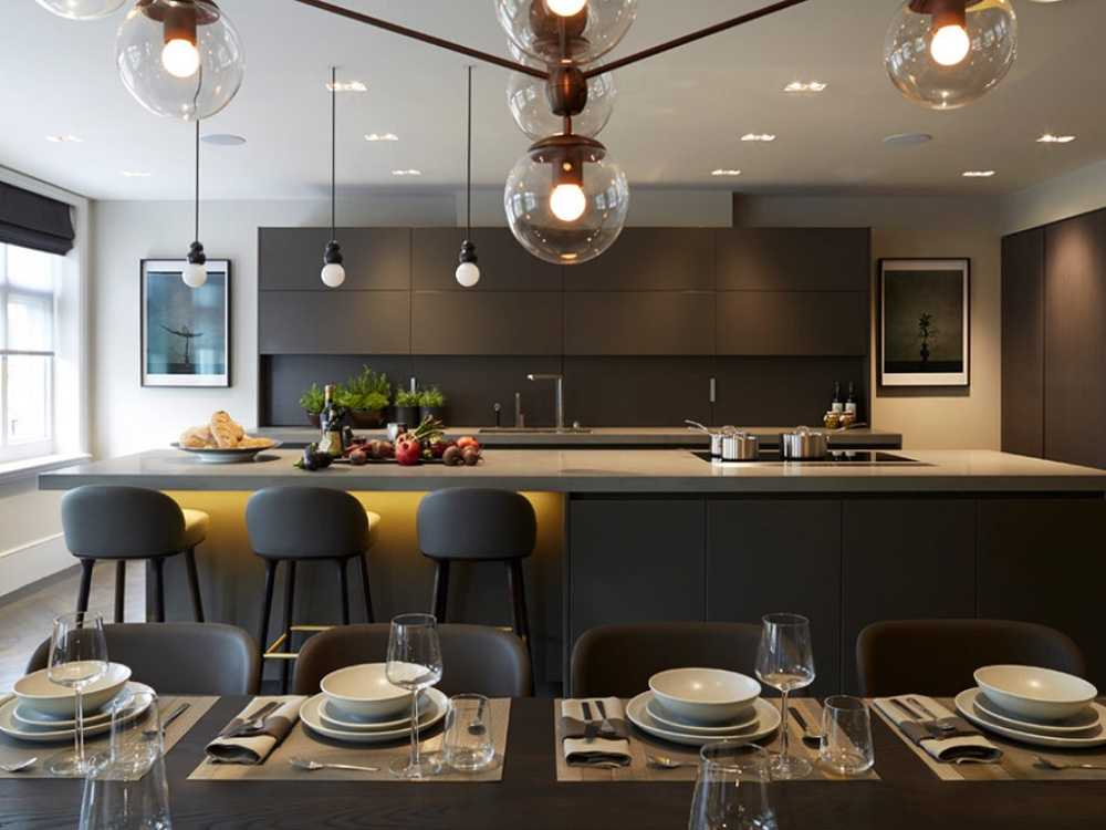 - Люстра для кухни с технологией Smart Home — диапазон интеллектуального освещения огромен, включая регулирование.