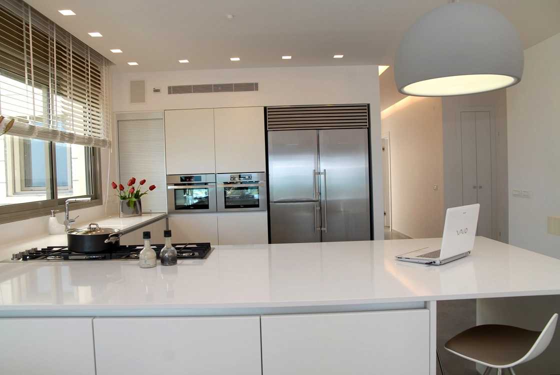 Кухня. Споты здесь обеспечивают достаточную освещенность и служат универсальным инструментом для зонирования. Они позволяют визуально изменить пропорции комнаты.
