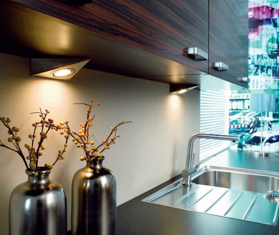 - Если кухонная лампа с постоянно встроенными светодиодами, то необходимо просто проверить информацию о продукте, чтобы увидеть, выполняет ли продукт ожидаемые функции. Если выбранная модель имеет пометки «Диммируемый — да» и «Диммер — содержащий», то это означает, что лампа может быть затемнена без ограничений. Однако в случае комбинации «Диммируемый — да» и «Диммер — не входит» потребуется внешний диммер.