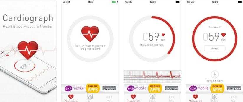 Существует целый раздел App Store, где вы найдете приложения, с помощью которых можно измерить частоту сердечных сокращений. Принцип работы, точно такой-же, как на медицинских датчиках, которые используют, чтобы отследить пульс.