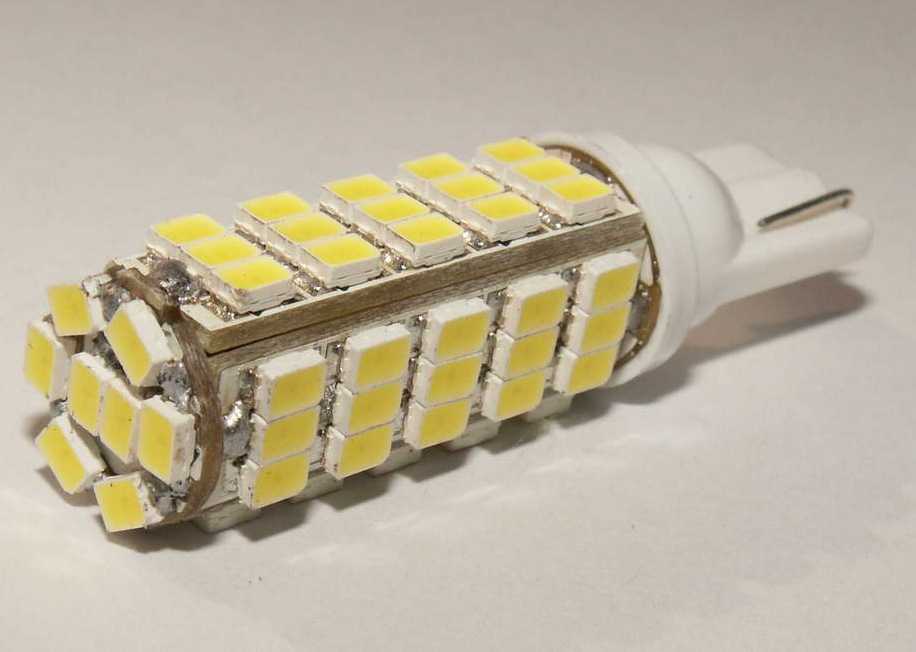 - Лампа светодиодная w5w передних габаритов с огромным числом диодов SMD 3020 (68 шт.). Большое количество напаянных элементов на единице площади говорит о слабом световом потоке каждого из них, а также снижает общую надежность и увеличивает размеры лампы. Покупать можно при невысокой стоимости, по сравнении с аналогичными.