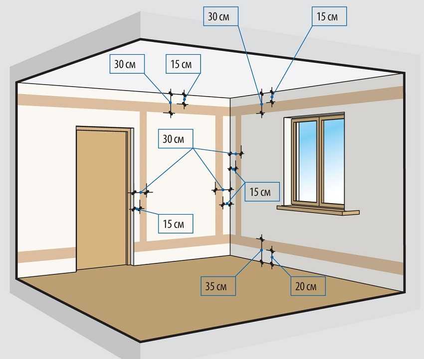 • производят разметку линии прохода провода, согласно имеющейся схеме;