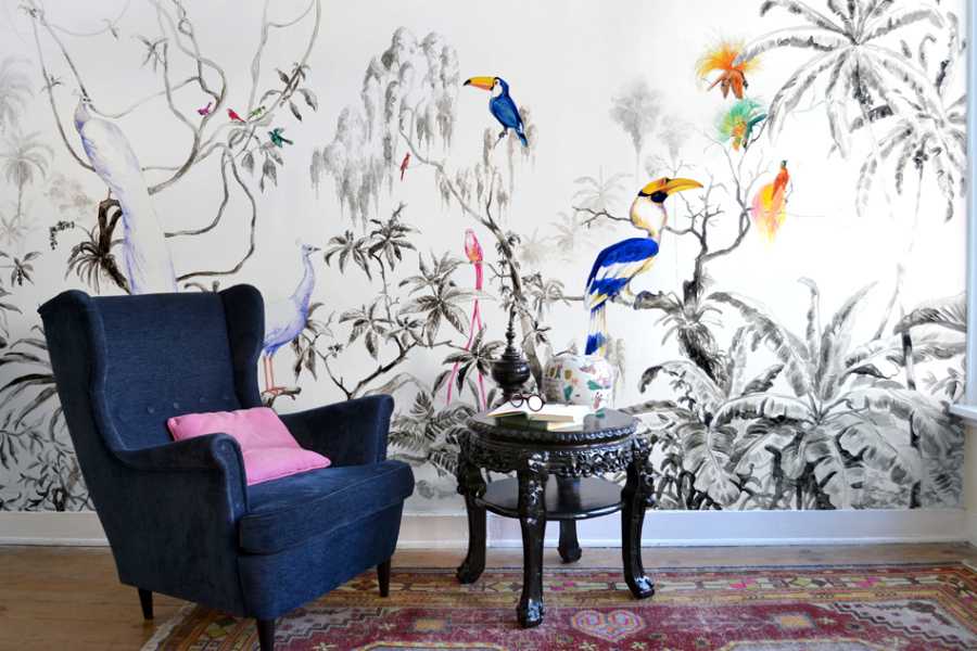 Считается, что первые обои с птицами в интерьере появились в Китае еще в средние века. Китайцы наносили изображения с пернатыми на рисовую бумагу и оклеивали такой красотой стены своих жилищ.