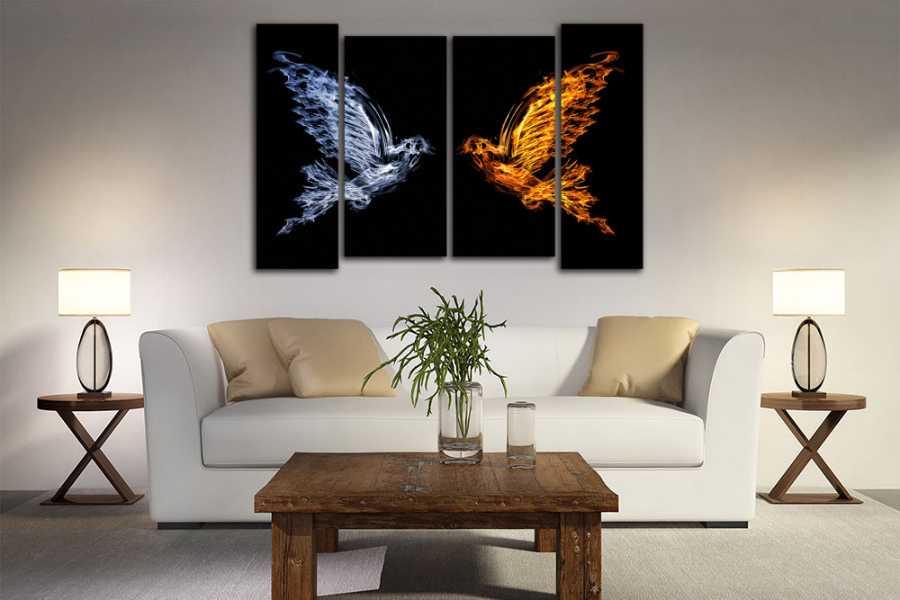 Картины с птицами в интерьере также прекрасно справляются со своей функцией.