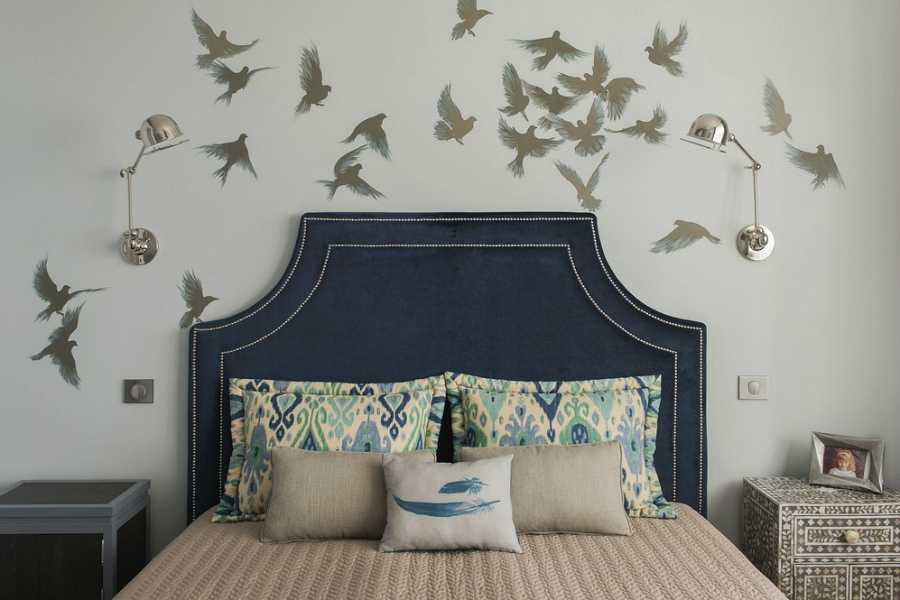 А можно обойтись и без обоев, а просто — нарисовать птиц прямо на стене. В каком угодно стиле. Вариантов и сюжетов здесь может быть множество, и выбирать — вам. Но независимо от стиля, нарисованные фигурки птиц придадут интерьеру особую романтичность и легкость.