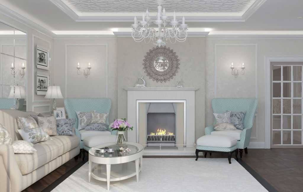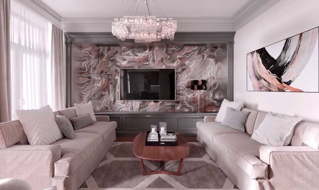 Отделка гостиной в стиле неоклассика не терпит дешёвых материалов