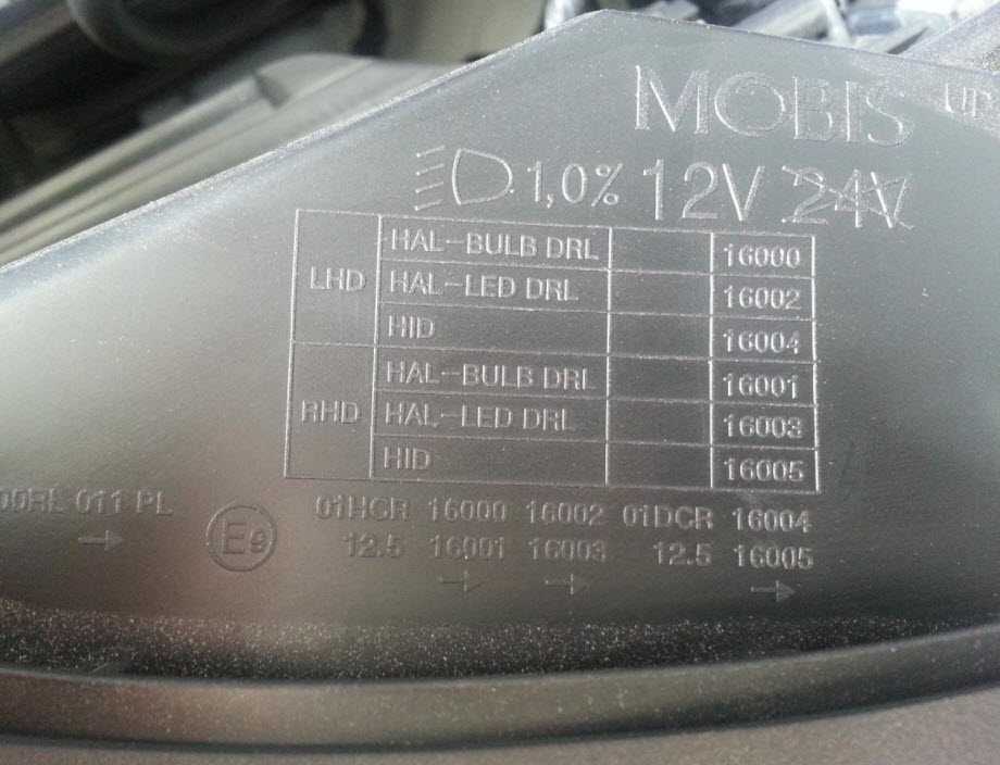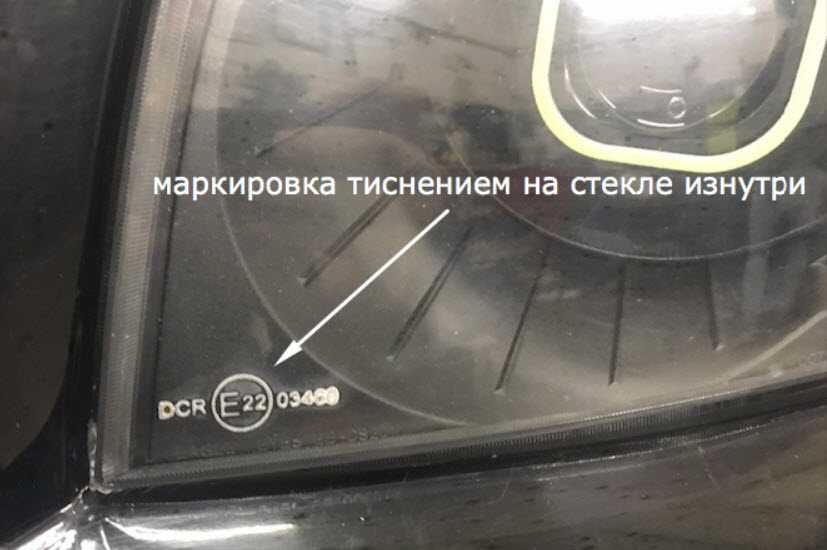 Маркировку уже установленных фар можно увидеть, заглянув под капот, на внутренней части стекла. В некоторых случаях для этого потребуется снятие фары.
