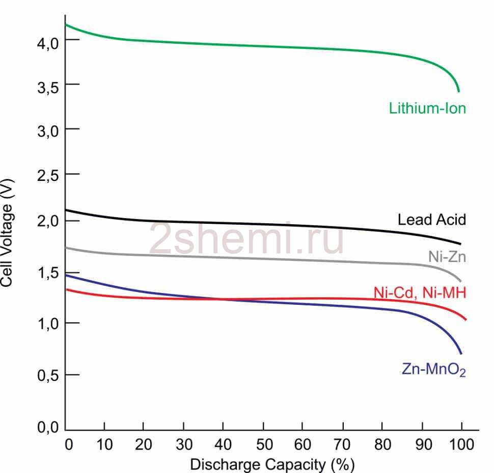 Примеры форм разрядных характеристик для популярных типов аккумуляторов