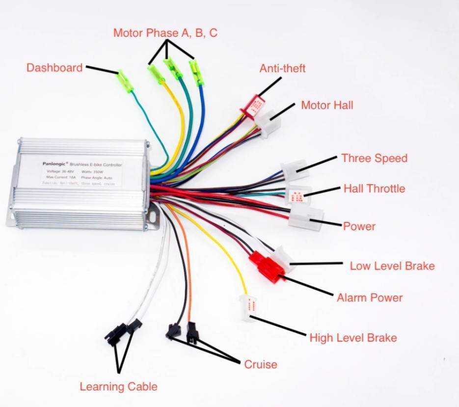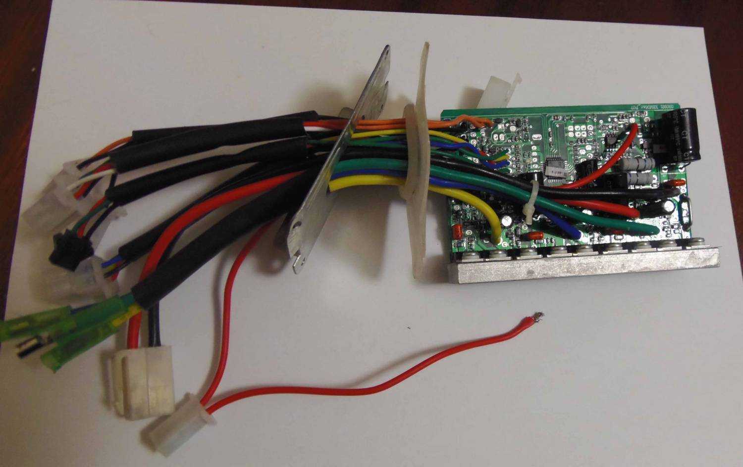 - Связка из 5 тоненьких разноцветных проводов – идет к проводкам мотор-колеса, обеспечивают питание и передачу сигналов от датчиков положения.