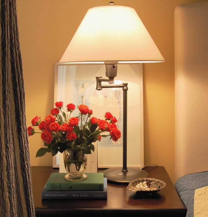 Нередко, особенно для малогабаритных хрущевок, спальня по совместительству является еще и рабочим кабинетом. Тогда просто необходимо установить настольную лампу.