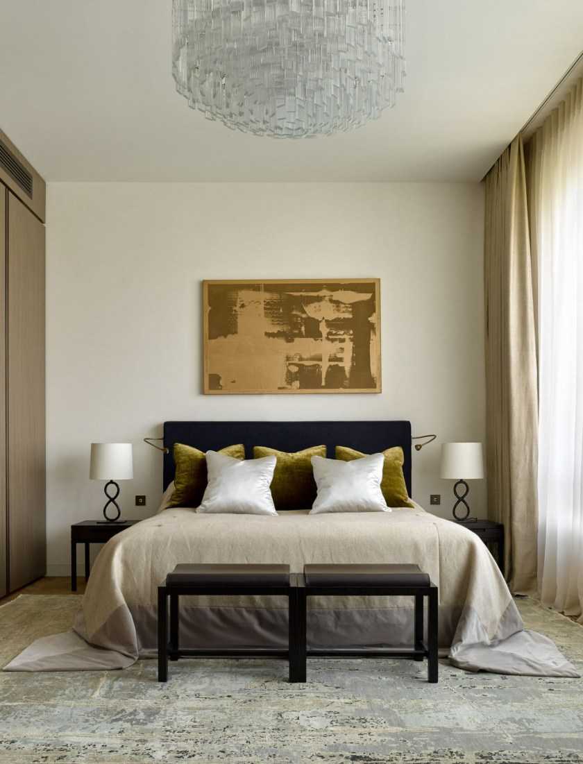 Если убрать хотя бы один из пяти этих пунктов, атмосфера уюта, располагающая к отдыху, исчезнет. Красивая спальня имеет не только базовое, но и местное освещение в зоне рядом с кроватью.