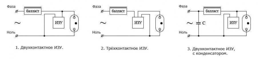 Заметьте, есть ИЗУ двухконтактные и трехконтактные. Первые подключаются параллельно самой лампе.