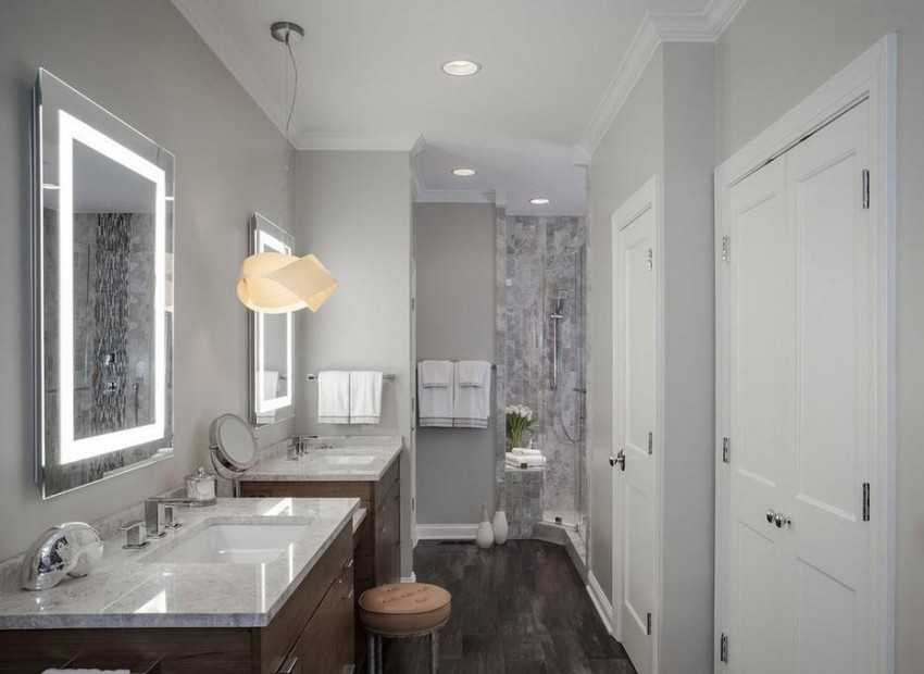 Свет наряду с цветами отделки является любимым инструментом дизайнера. С помощью осветительных приборов можно скорректировать видимые размеры имеющей неоптимальные пропорции или просто небольшой ванной.