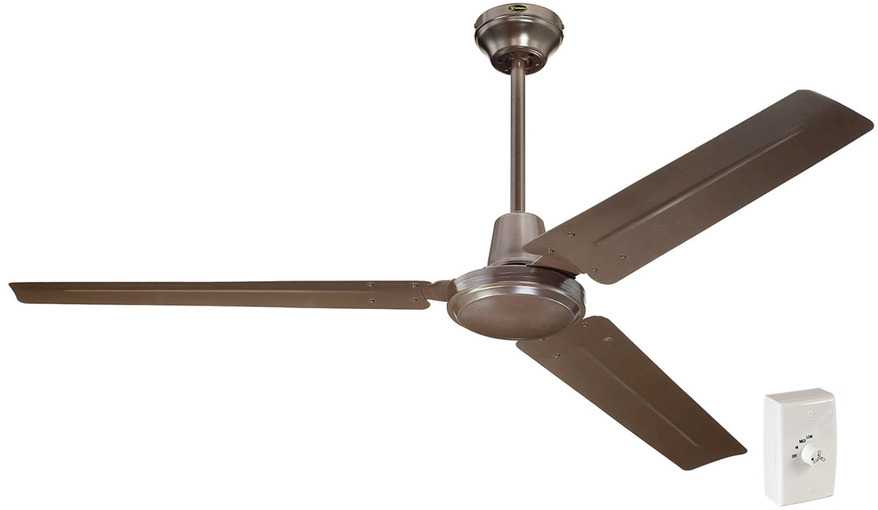 Необычный коричневый девайс продается за 9800 рублей в любом интернет магазине. Его диаметр — 142 см, при этом мощность равна 70 Вт. Стальные лопасти в коричневом стиле подходят практически под любой интерьер. Их три штуки при этом обрабатываемый объем воздуха составляет 13500 метров кубических в час.
