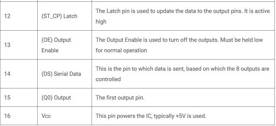 Расшифровка обозначений контактов регистра сдвига74HC595 на русском языке выглядит следующим образом.