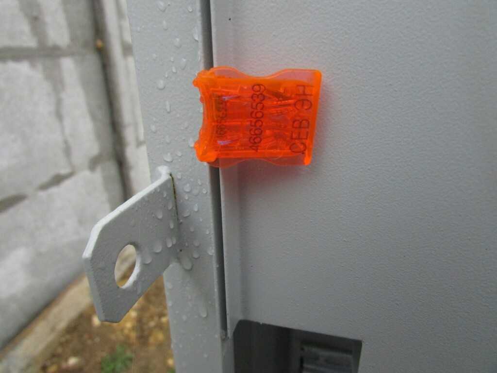 В случае с уличной розеткой, мне следует добавить металлическую пластину. Она должна быть такого размера, чтобы выступала за габариты корпуса розетки на несколько миллиметров. Металлическая пластина под розеткой: