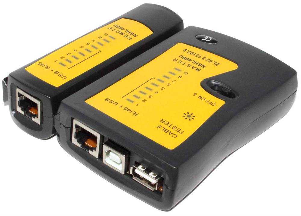 Сетевой тестер RJ45 предназначен для диагностирования кабельных сетей, соединяющих ПК и компьютерное оборудование. Тестер витой пары имеет два USB входа. Проверяют состояние кабеля таким образом: