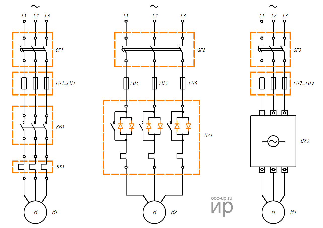 Схемы присоединения односкоростных асинхронных электродвигателей с короткозамкнутым ротором