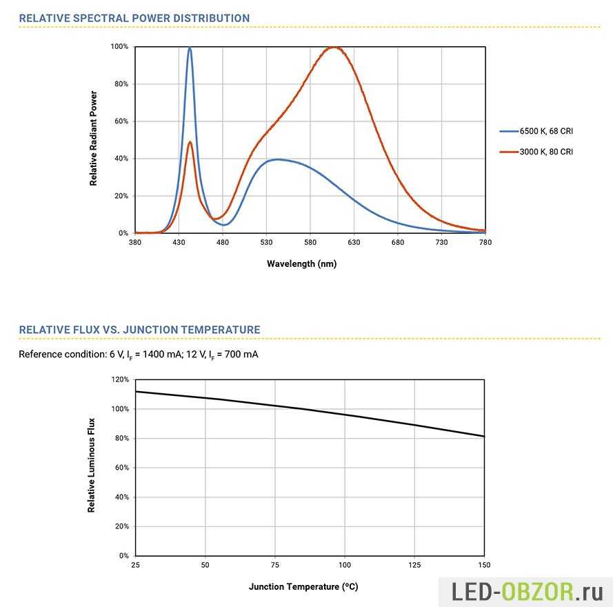 Конечным результатом в проектировании любого светодиода является достижение нужного уровня светового потока. По экспериментальным измерениям, которые проводились компанией Cree, при токе 700 мА и комнатной температуре 25 ̊С получены следующие результаты: