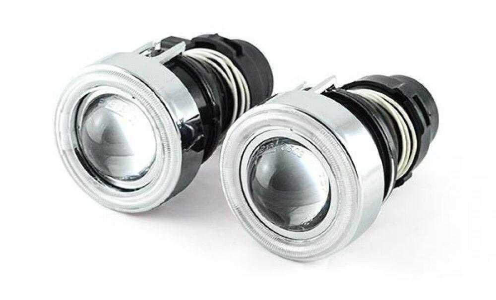 Универсальные линзы диаметром 77 мм обеспечивают стабильный, плотный световой поток, хорошо освещающий полотно и обочину в плохую погоду. Установлена подсветка «ангельские глазки» на основе светодиодов CCFL с ярким белым свечением. Эта система может использоваться в качестве дневных ходовых огней или дополнительных габаритных сигналов. «Ангельские глазки» подключаются к электропитанию отдельно от основной лампы ПТФ, которая включается штатной кнопкой.