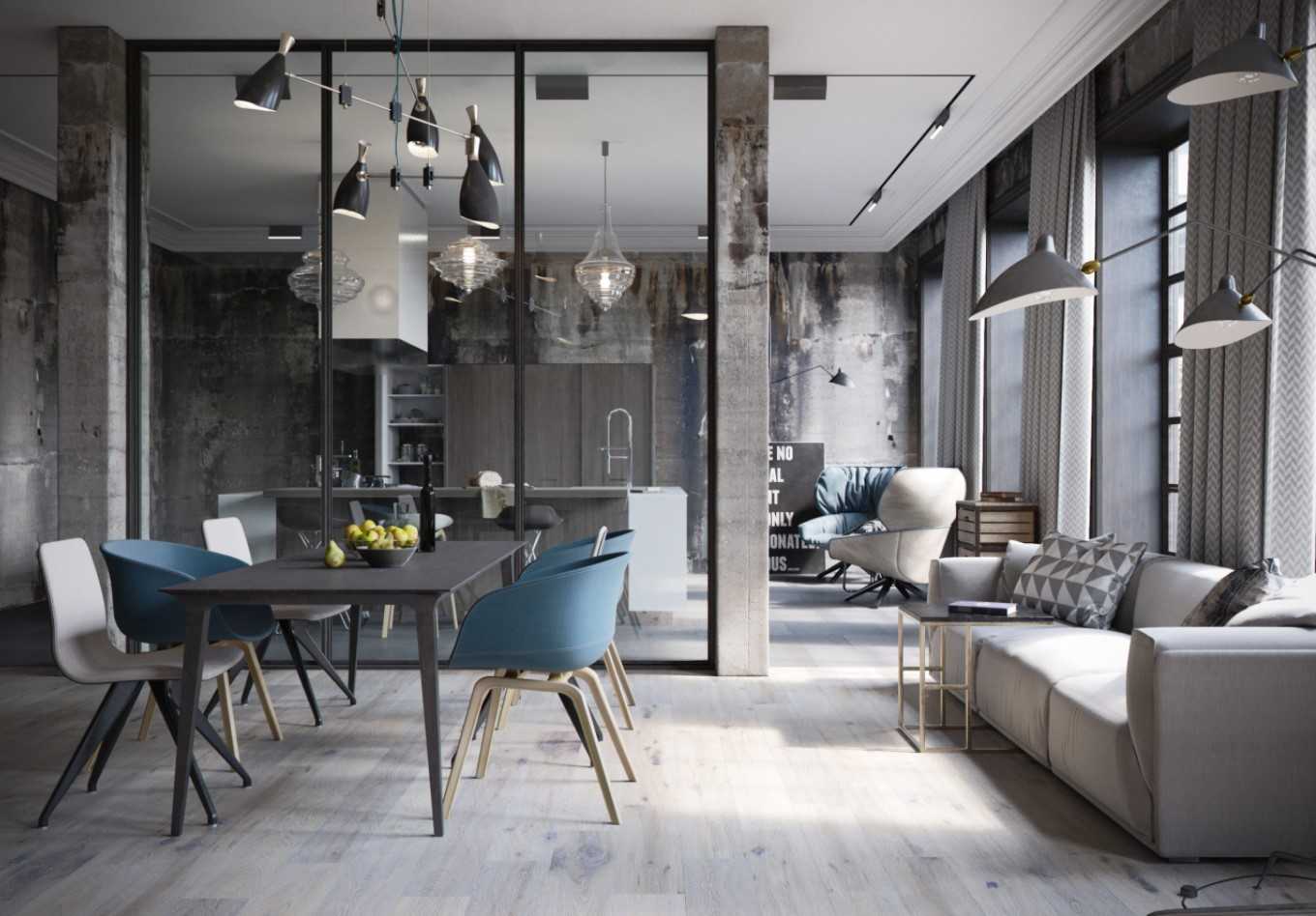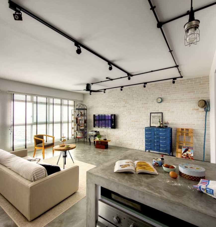 Если вы в своей квартире решительно убрали все перегородки и создали нечто вроде лофта, можно вообще обойтись без использования классических светильников и построить на потолке целую трековую сеть. Это добавит комнате те самые промышленные мотивы, которые и определяют лофт как стиль интерьера.